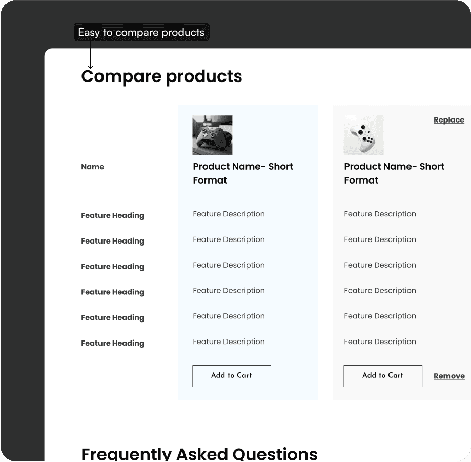 Easy comparison between products.