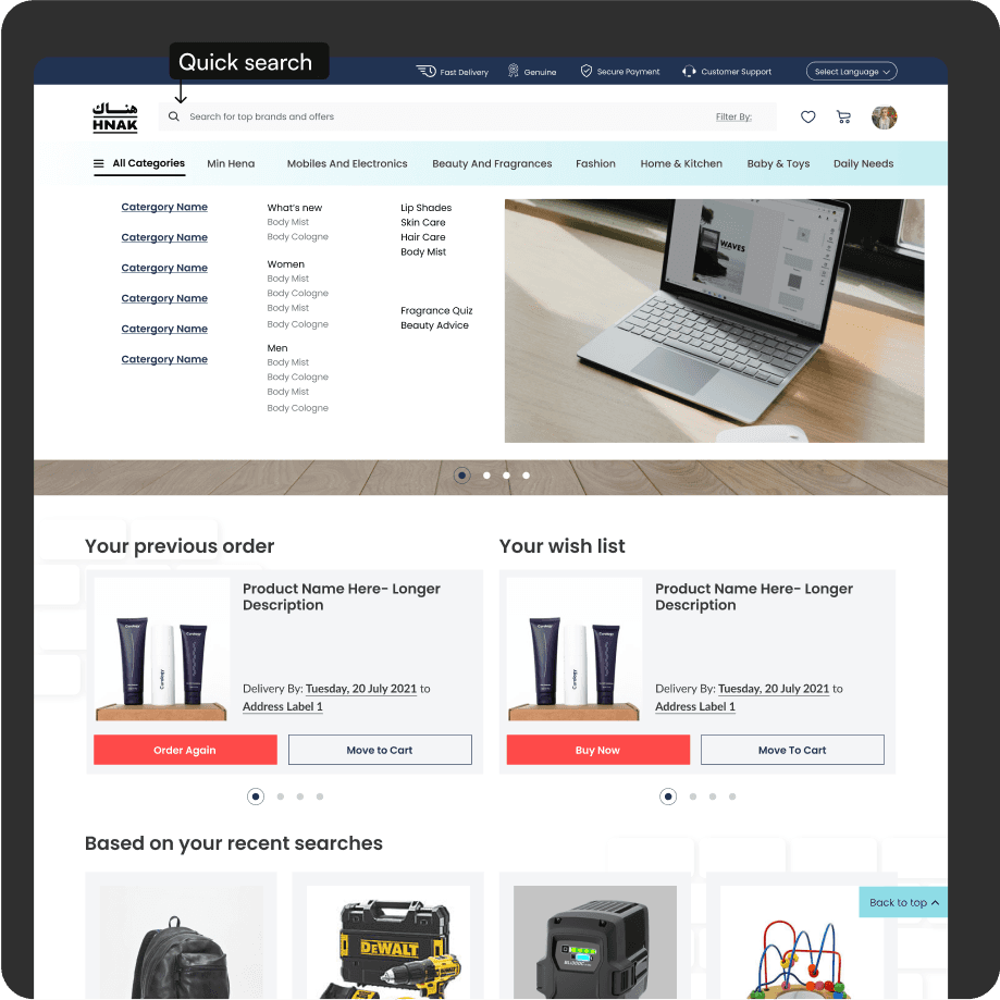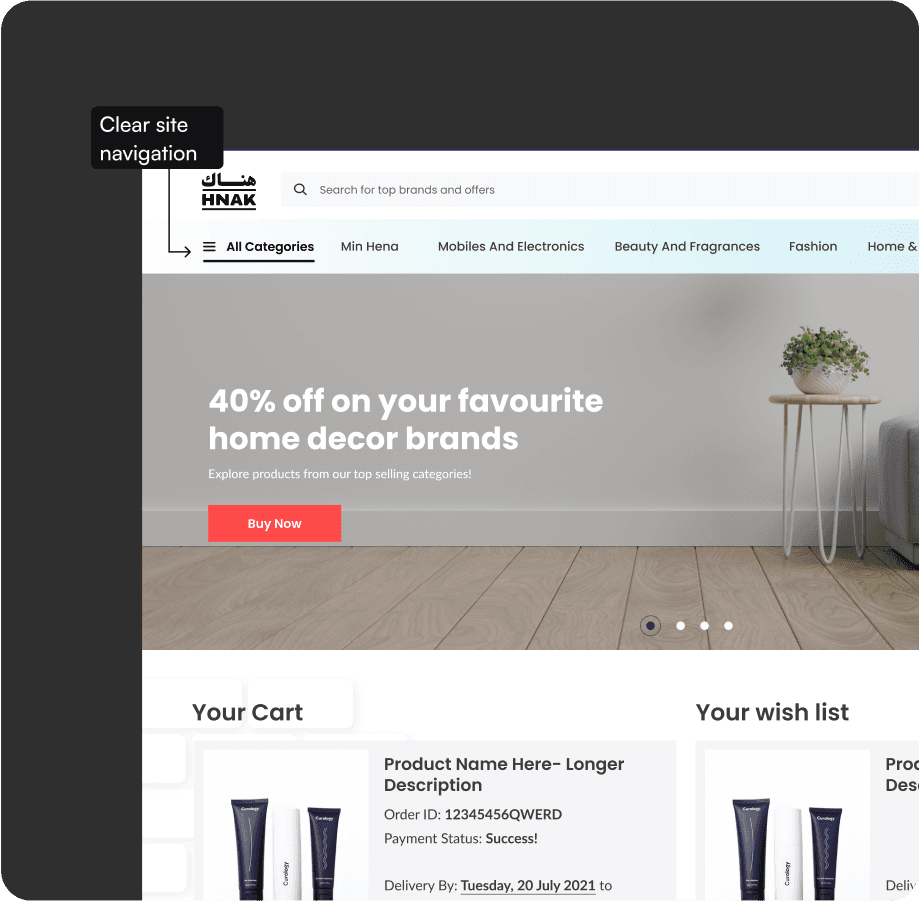 HNAK is the e-commerce branch of Al Musbah group, one of the leading retail companies in Saudi Arabia - with 190+ stores across the middle east region. HNAK is positioned to shift that focus by being the home of top international brands while actively telescoping and supporting local trends and talents.