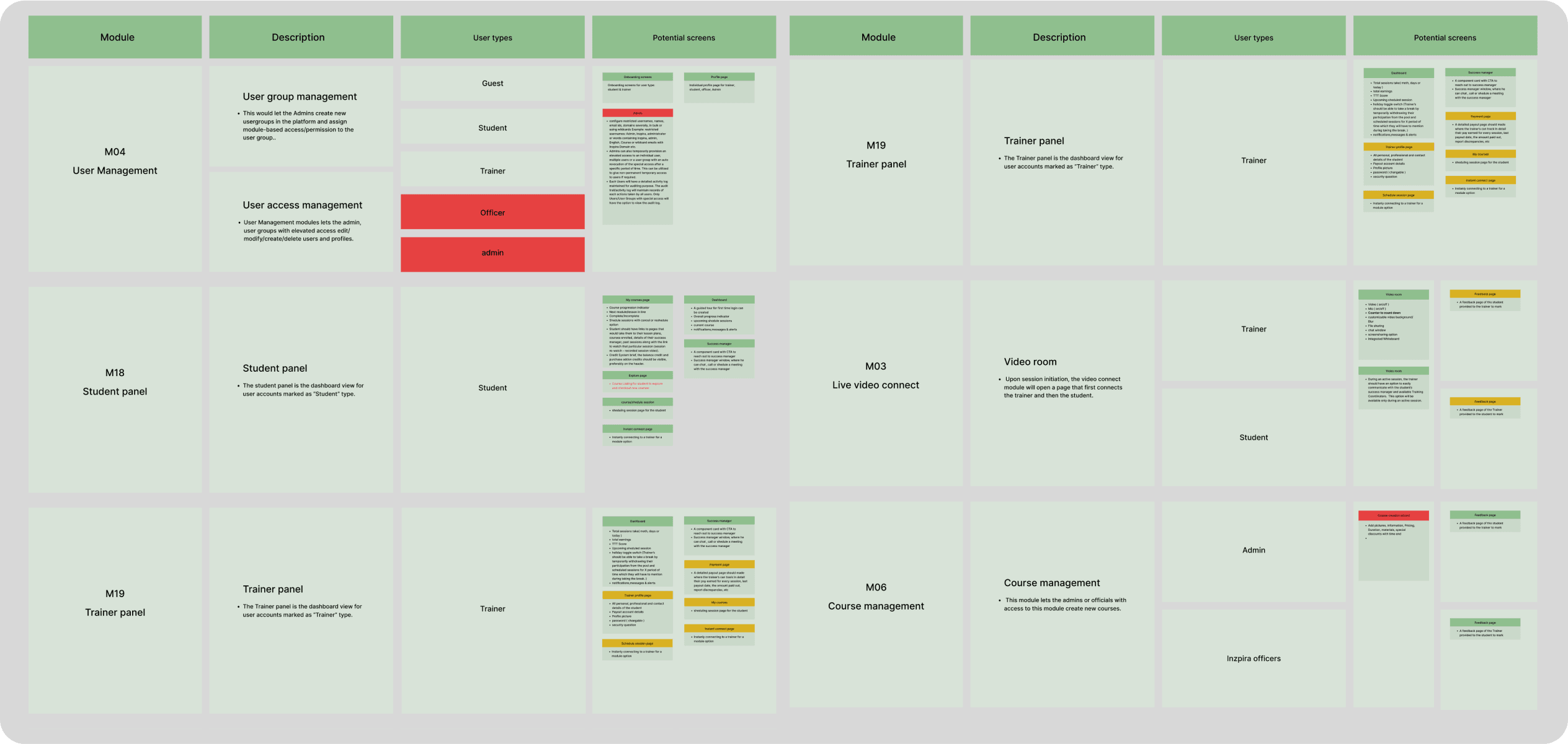 After engaging in discussions with stakeholders and the development team, the platform modules have been visualized to prioritize the construction of the most technically complex modules first.
