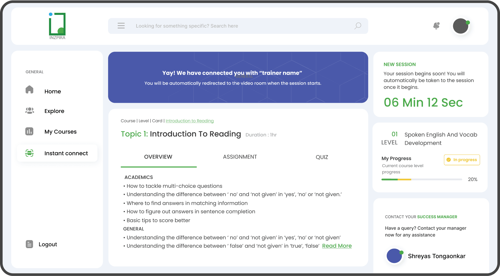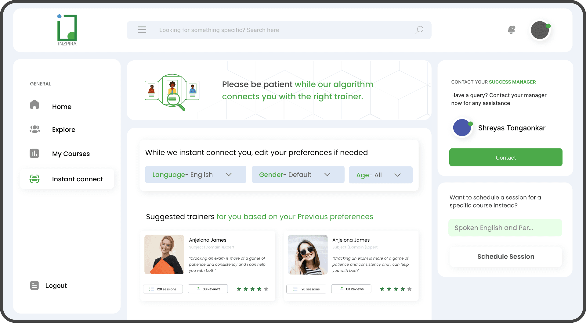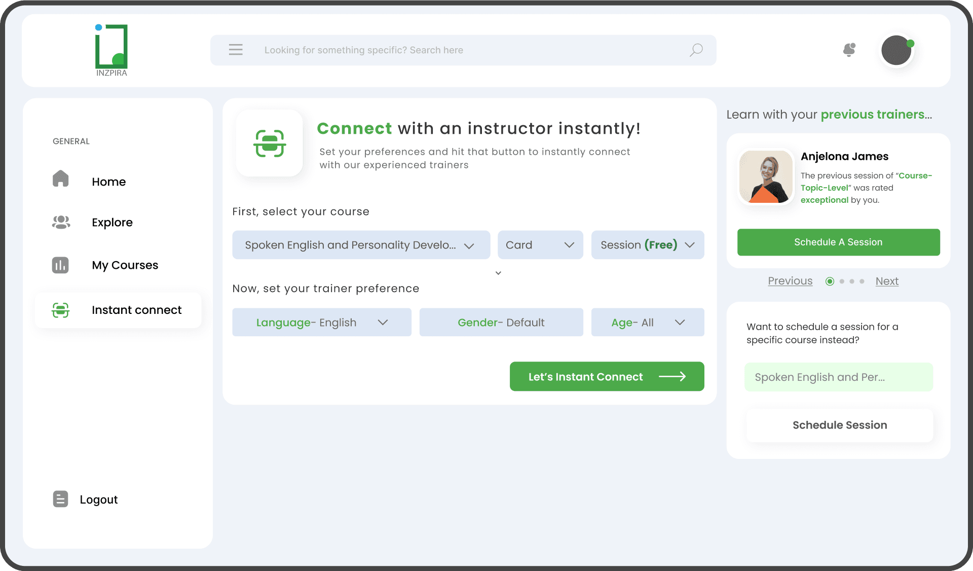 Inzpira is the communication skills platform that provides an immersive learning experience with multiple coaches to enable learners to prepare for practical real life situations. With on-demand, 1-on-1 coaching, Inzpira provides an affordable and convenient way for people to improve their communication abilities quickly and effectively.