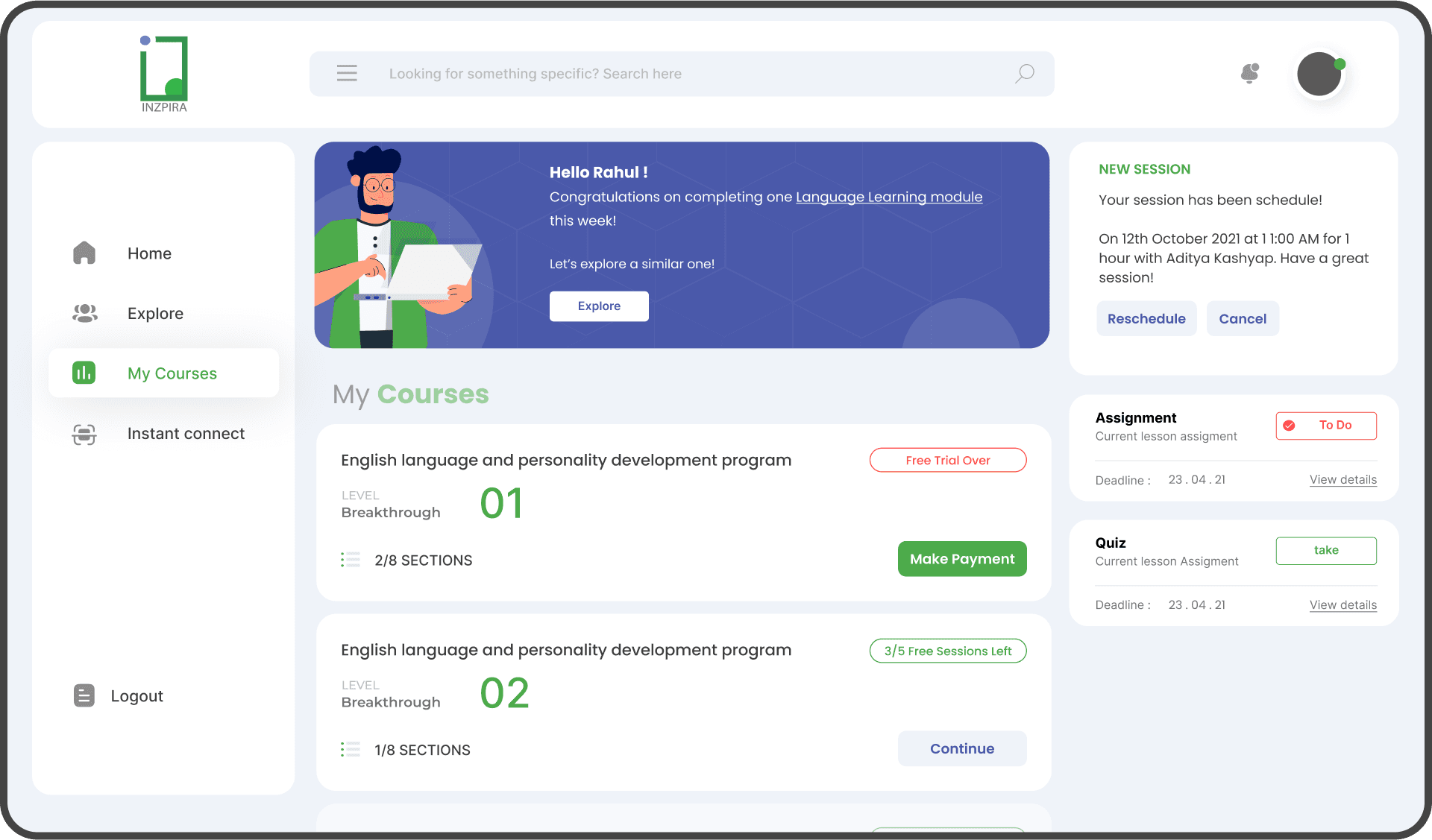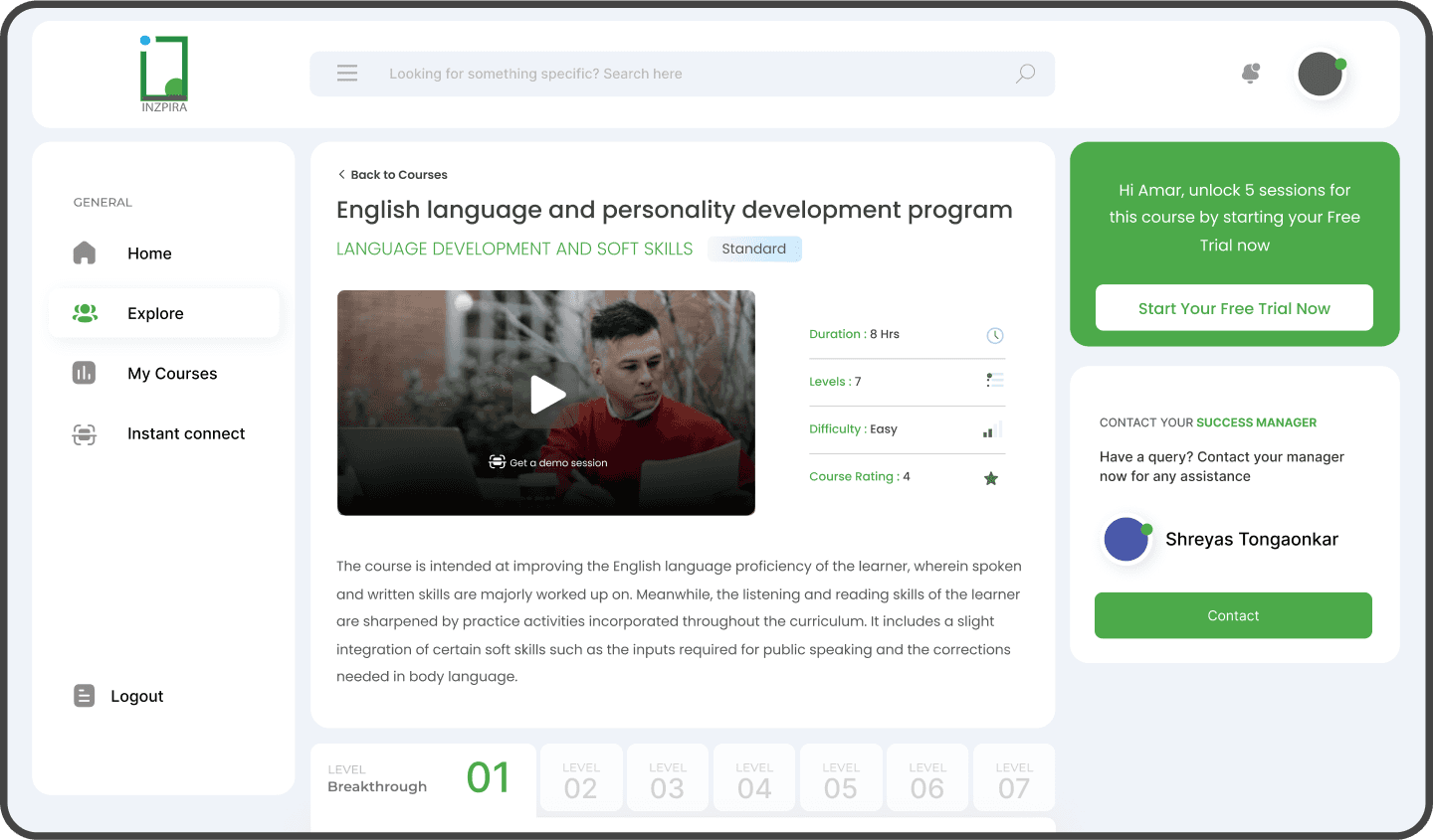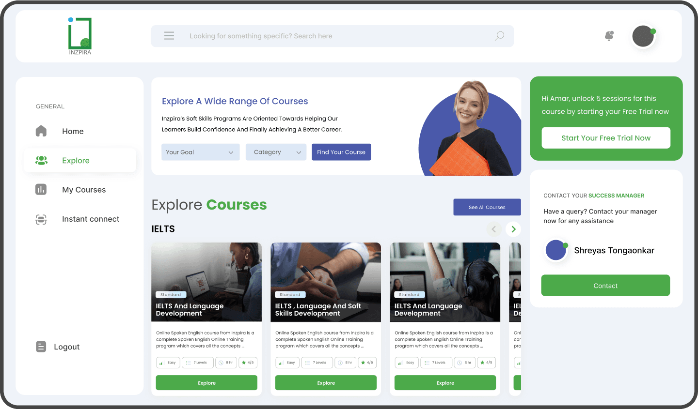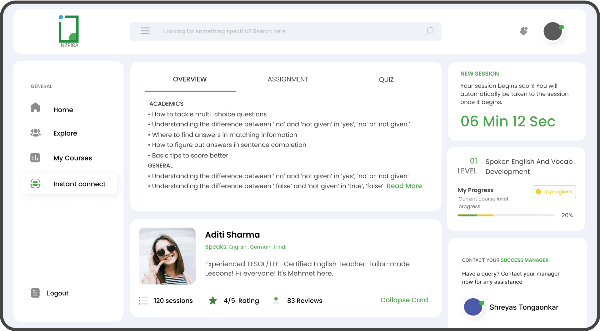 Inzpira is the communication skills platform that provides an immersive learning experience with multiple coaches to enable learners to prepare for practical real life situations. With on-demand, 1-on-1 coaching, Inzpira provides an affordable and convenient way for people to improve their communication abilities quickly and effectively.