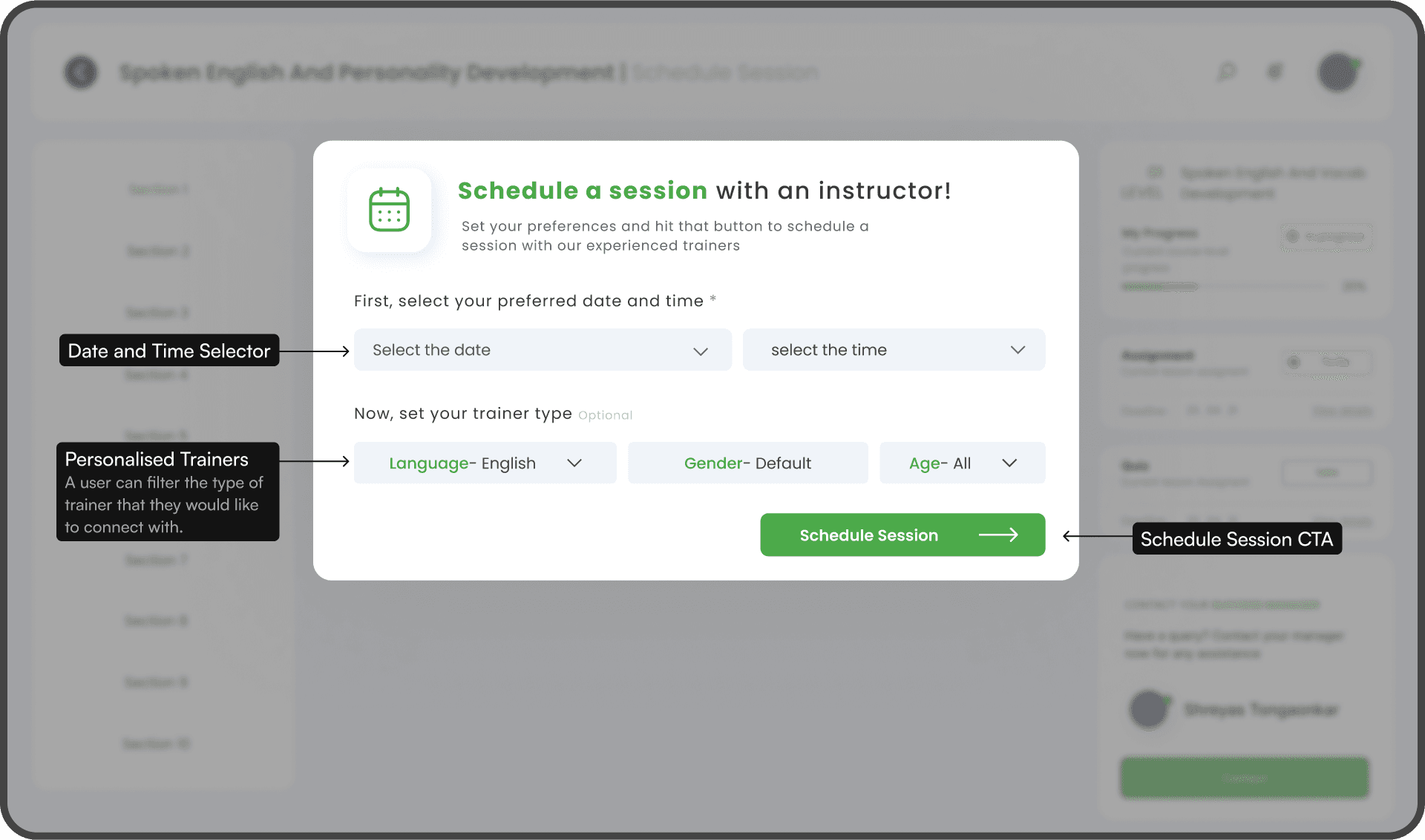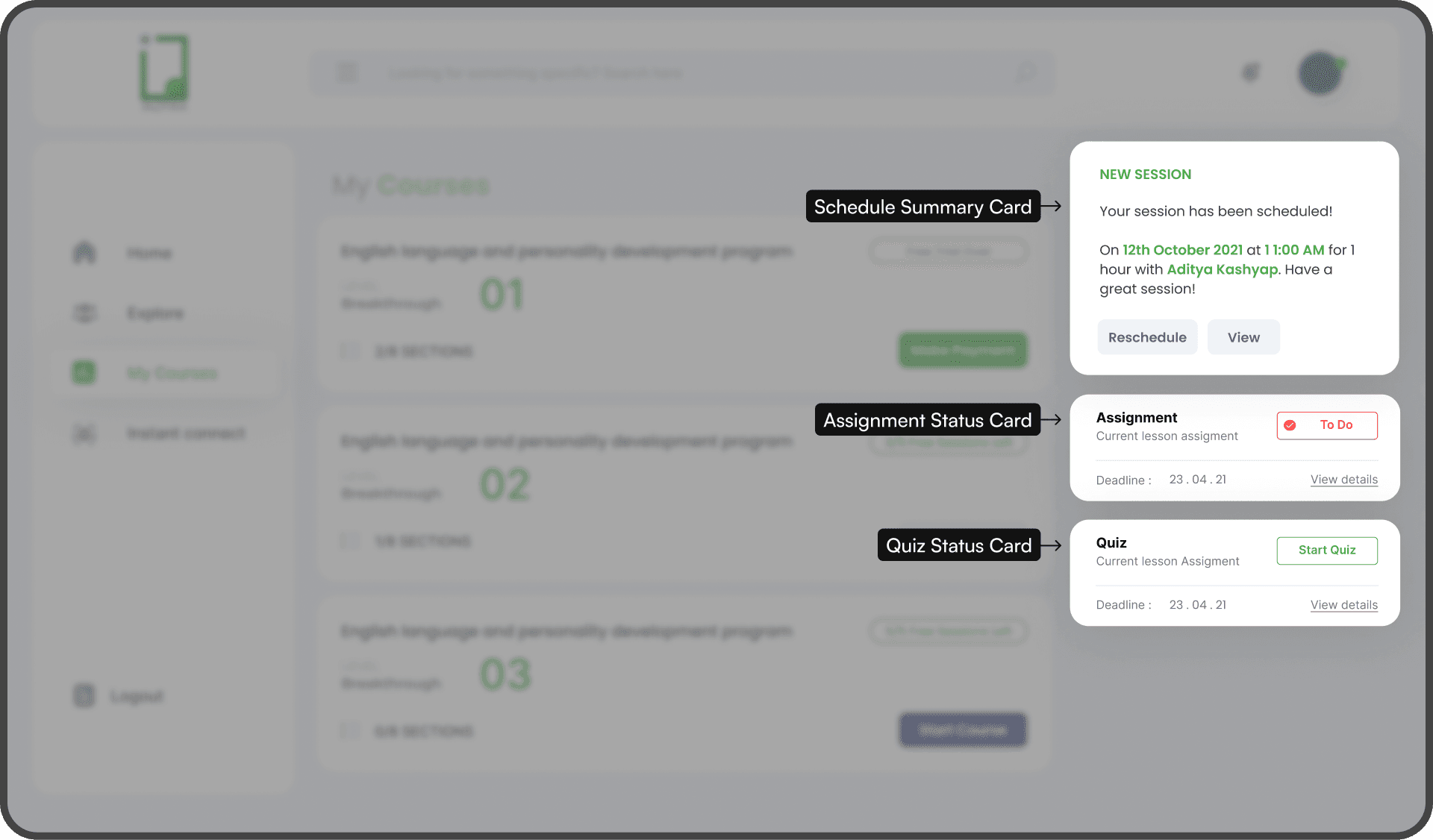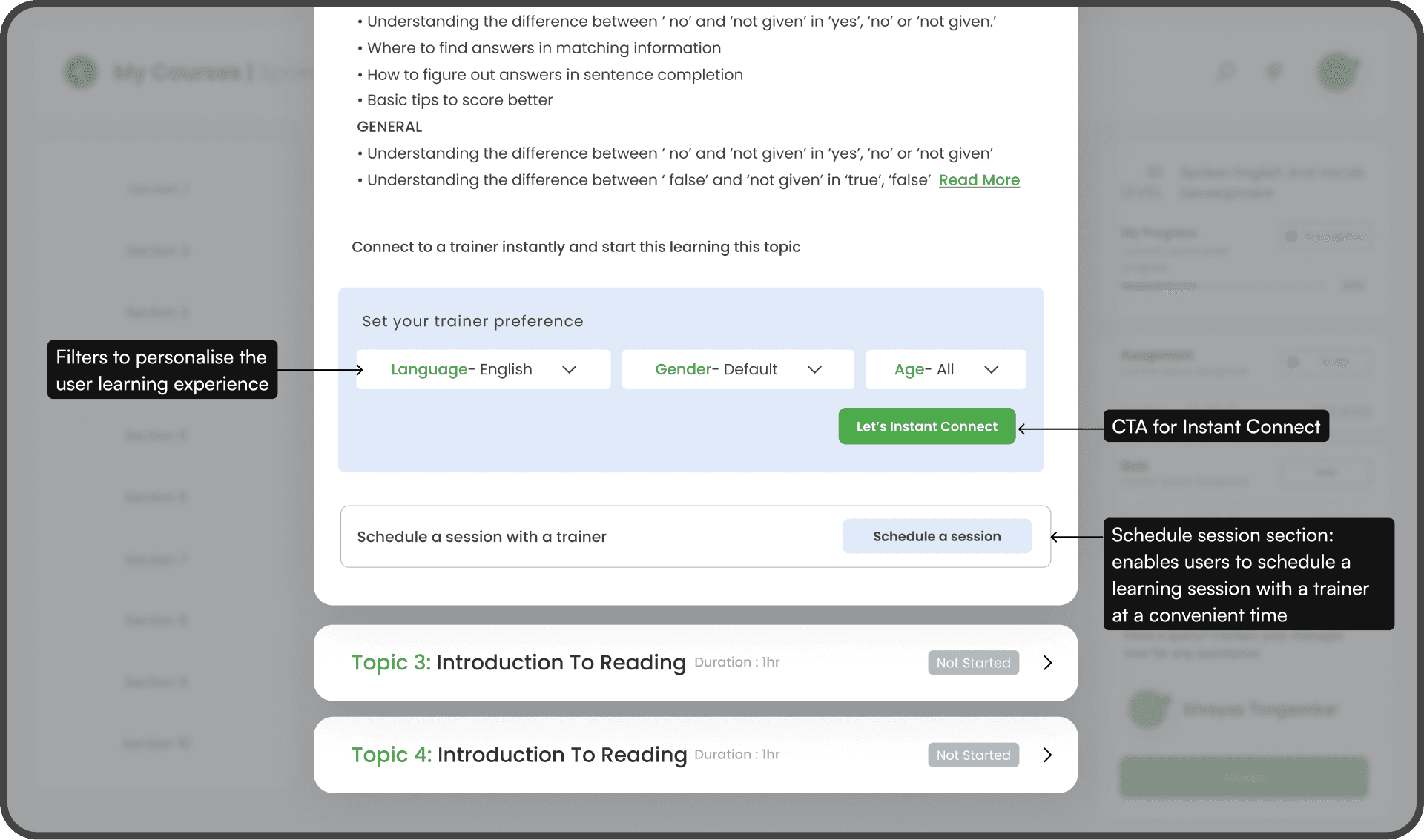 How might we build a unified platform that allows young adults (18 to 25 yrs old) that are aspiring to learn English, to find and connect with tutors of their choice, over a video session at their own convenience?