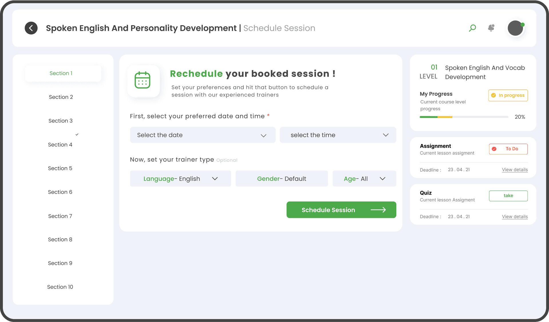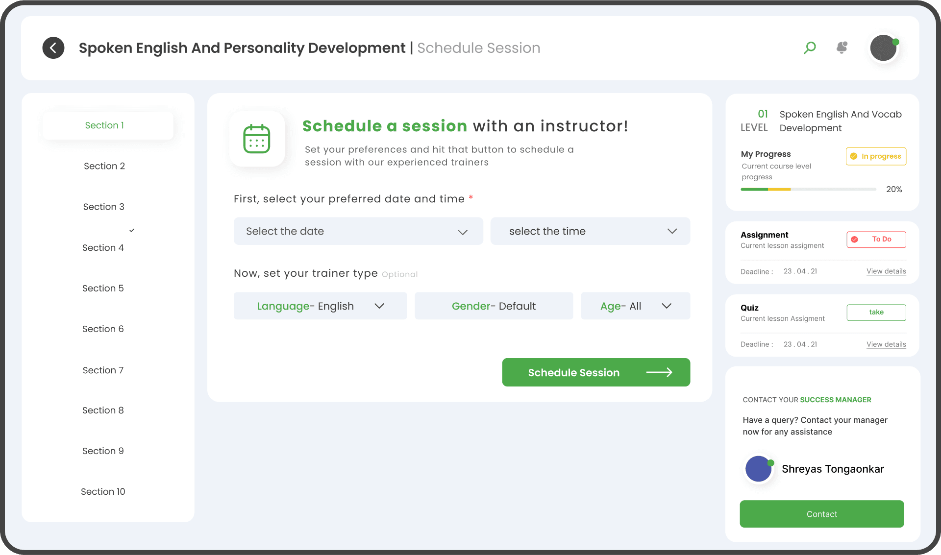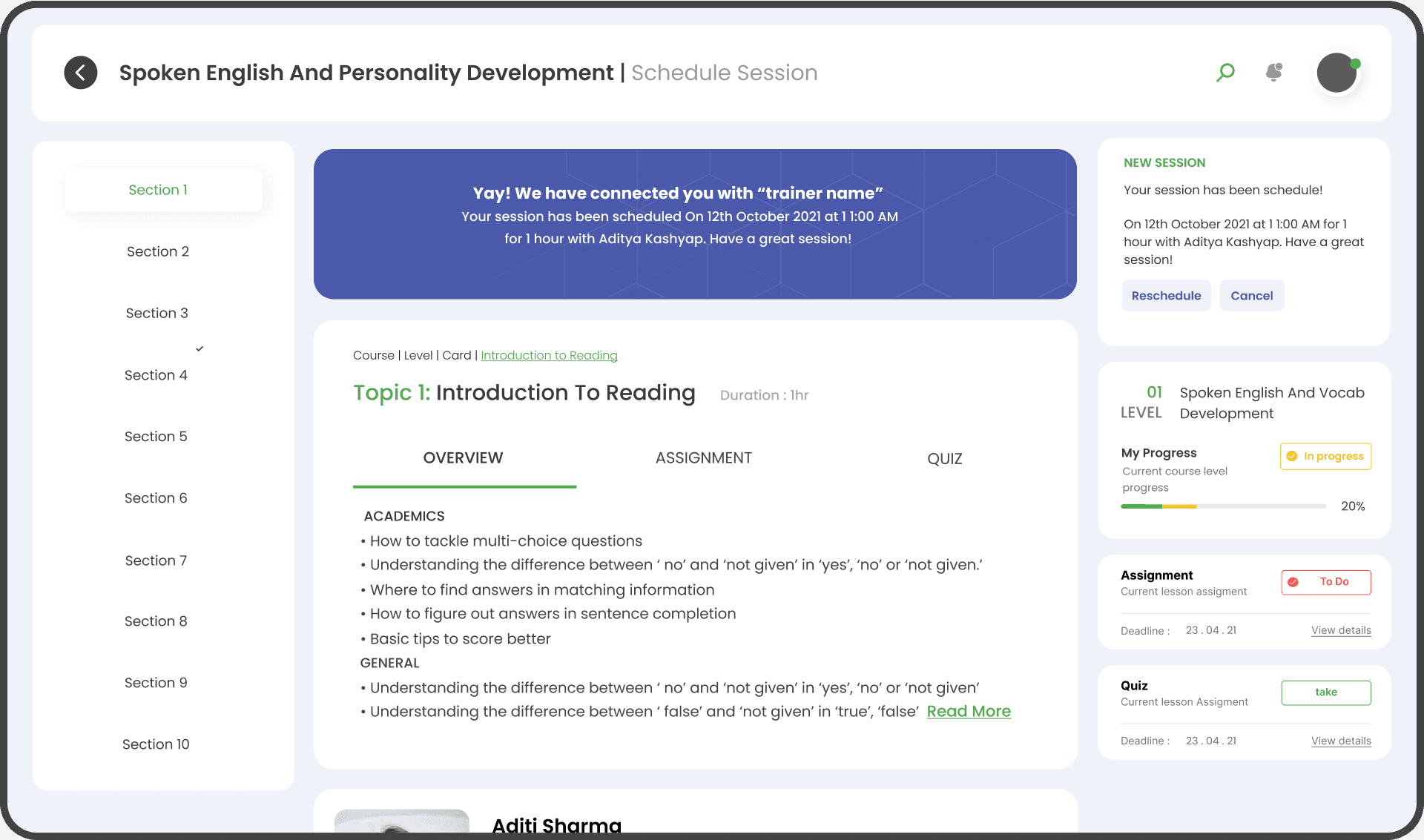 How might we build a unified platform that allows young adults (18 to 25 yrs old) that are aspiring to learn English, to find and connect with tutors of their choice, over a video session at their own convenience?