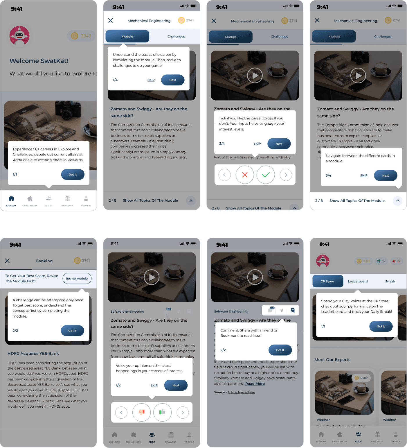 We built a series of micro-interactions and animations that would help enhance the MVP and add character to our design. These interactions were crucial in bringing our vision of using gamification principles to life.