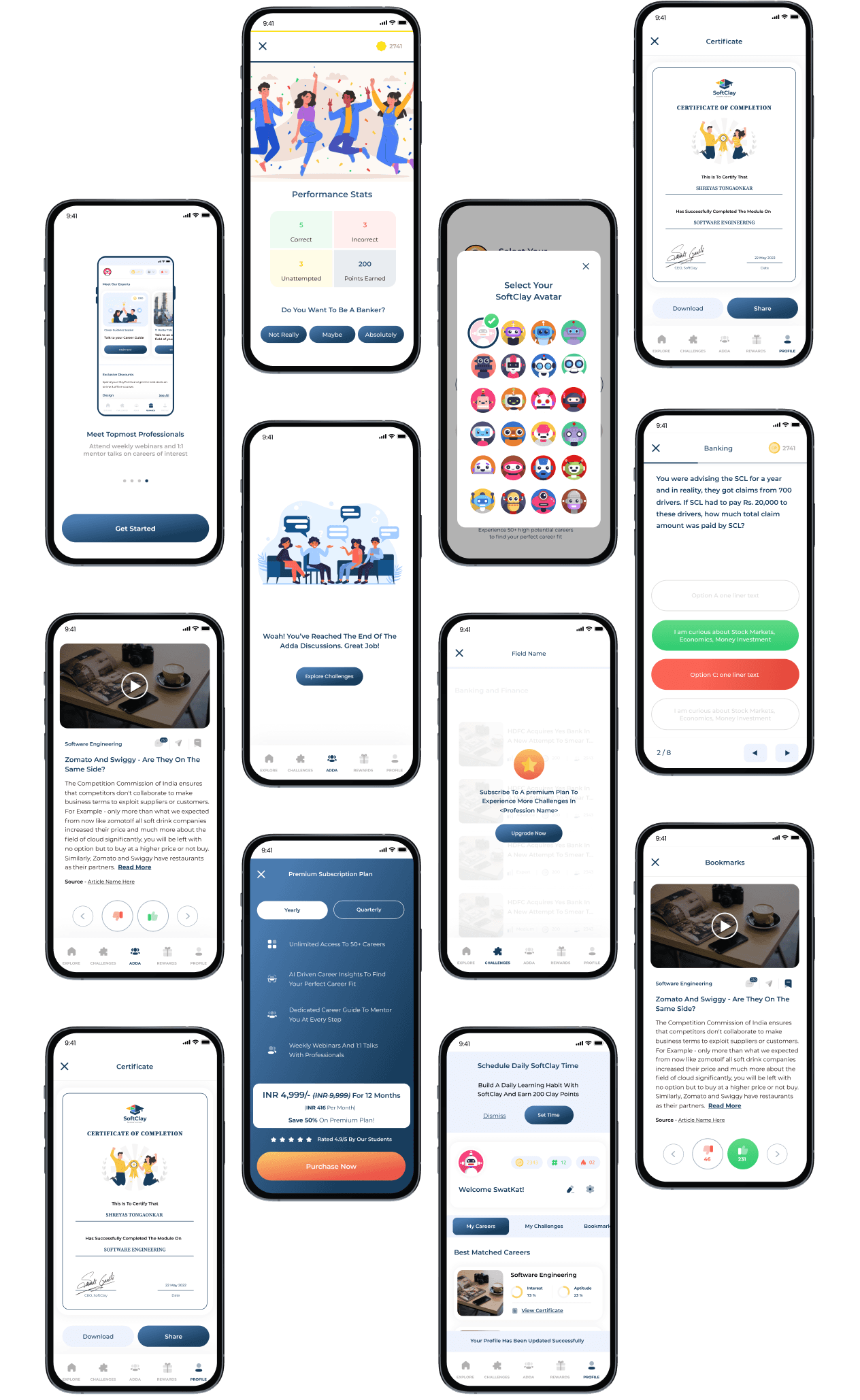 SoftClay is an education technology mobile app that helps high school students (grades 8 to 12) explore different career paths and gain exposure to various professions. It offers a range of interactive features such as cards, bookings, points systems, and challenges, to assist students in identifying their ideal career path.