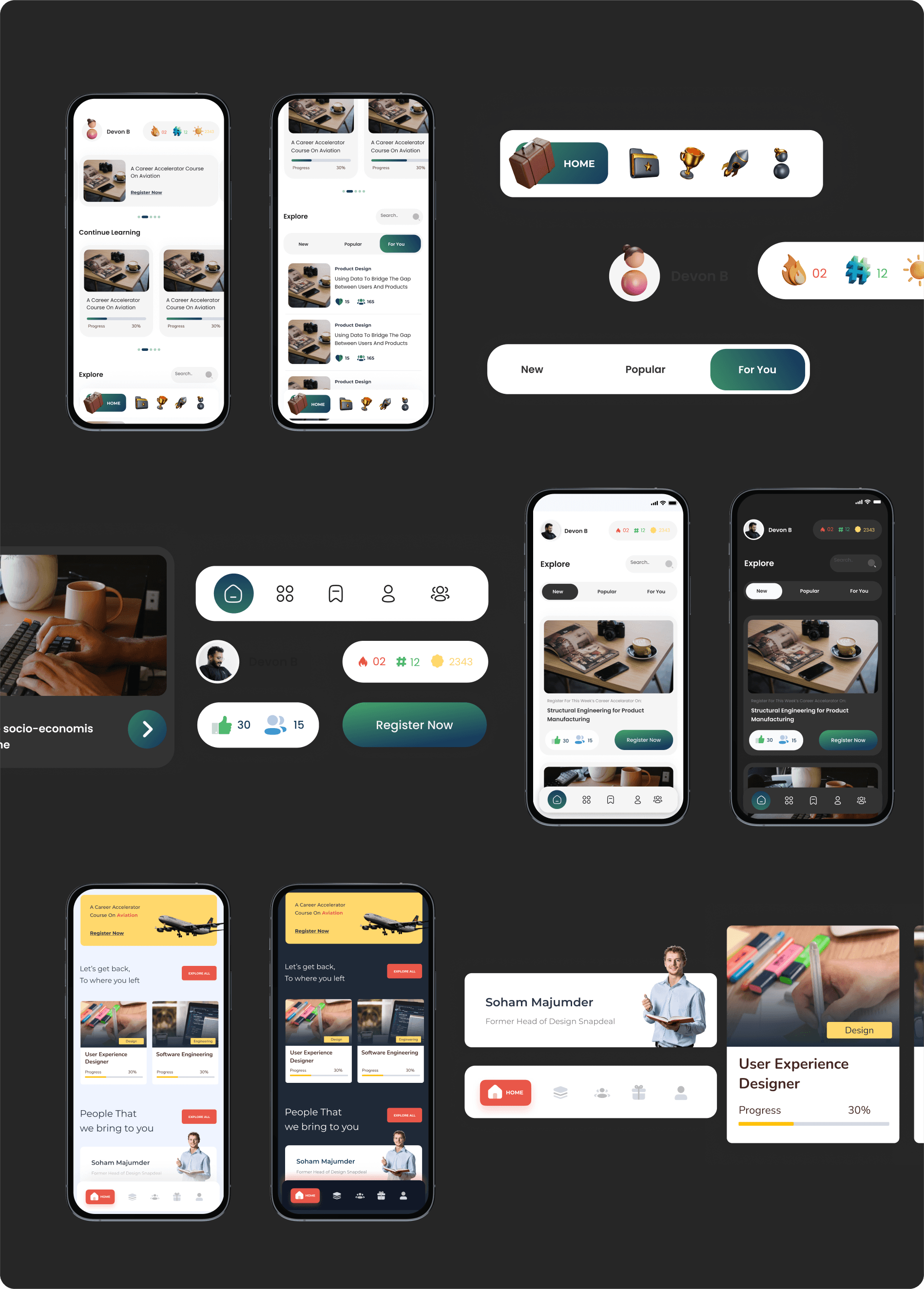 As a designer, it was important to create the relevant experience to align with that intent. I studied the trending trends in the medium of application design to understand and narrowed down trends and practices which would align with the domain application that I was building.