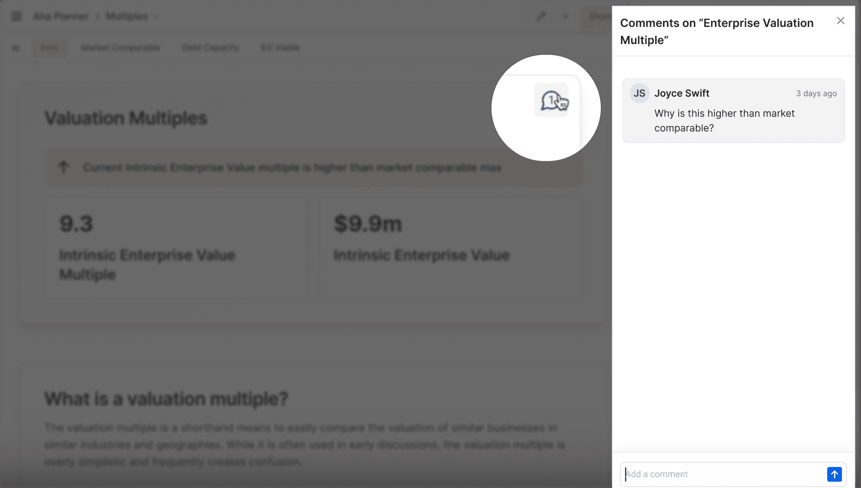 A comment feature allowed advisors and clients to leave notes and replies directly within the product, keeping communication contextual and reducing back and forth outside the platform.