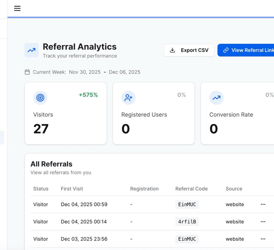 Advisors could manage, customize, and generate referral codes, track how each one was performing, and share them however worked best for their practice, whether through a newsletter, website, or directly with clients.