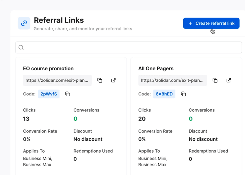 Advisors already had the trust. The referral system gave them a way to act on it, managing commissions, setting client discounts, and tracking it all from one place inside the Zolidar platform.